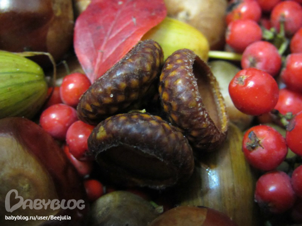 Какая красотища!!! А у нас еще желуди и каштаны на деревьях висят... Мой малышь очень любит такие коробочки.