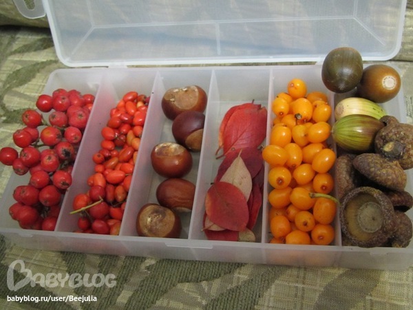 Новая тактильная коробочка на тему осени. В прошлом году я тоже делала такую же http://www.babyblog.ru/community/post/rannee_razvitie/1691007, год прошел и вот эту коробочку мы делали уже со Степой вместе, вместе собирали природные материалы, вместе насыпали в коробочку. В ней и рябина, и барбарис, и облепиха, и желуди, и каштаны и осенние листочки, и облепиха придала ей особый приятный запах)))) Кстати, в прошлом году наши дубы были без желудей, а вот сейчас их очень много)))))