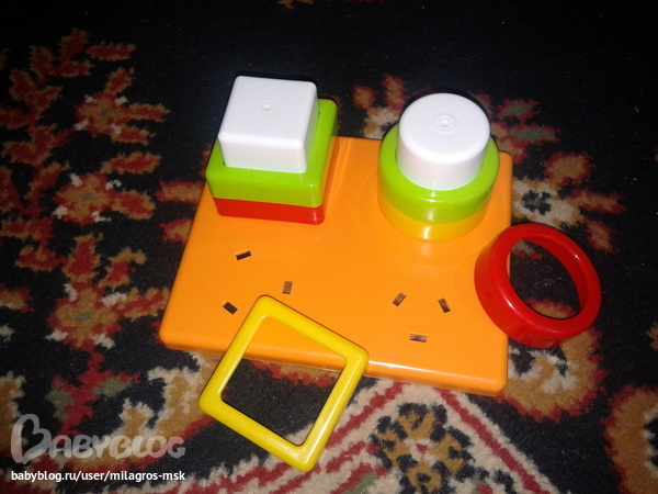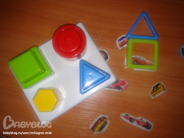 Понравилось заниматься со от "Пирамиды открытий". Дала 2 тарелочки и попросила в одну складывать круги, в другую все остальные фигуры. Результат меня приятно удивил. Промахов было крайне мало.