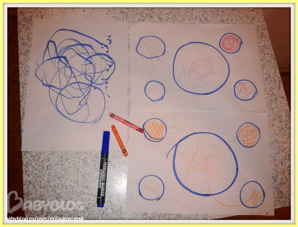 Учились рисовать круги (успехи наблюдаются), закрашивали круги, делали круги из теста для лепки.