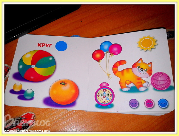 Рассматривали круглые предметы в мини-книжке "Моя малышка. Формы" изд-ва Стрекоза.