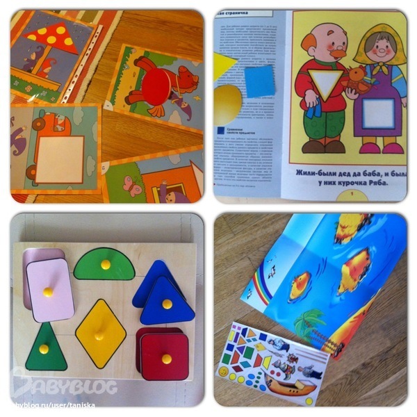 Школа Семи Гномов 0-1 и 1-2 года, деревянная рамка-вкладыш и игра с наклейками "волшебная геометрия". Со всеми заданиями малышка справилась на "ура" (чем на самом деле меня удивила)
