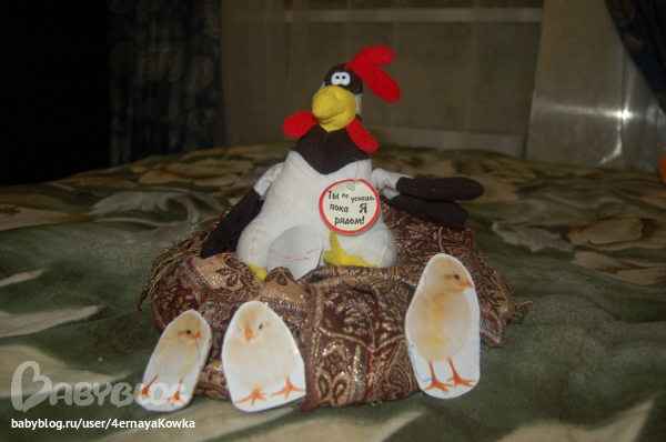Сделала дочке вот таких цыпляток из картонаи "настоящее" гнездо, в которое курочка откладывала яички. А из них появлялись чудесные цыплята. Играли с мамой-курицей: выводили гулять, кормили, прятались под крылышко. С цыплятками дочка играла хорошо, только все время пыталась накормить их яйцом... Похоже связь яйцо-цыпленок нам пока не доступна. Яйцо - это еда, ням-ням)
