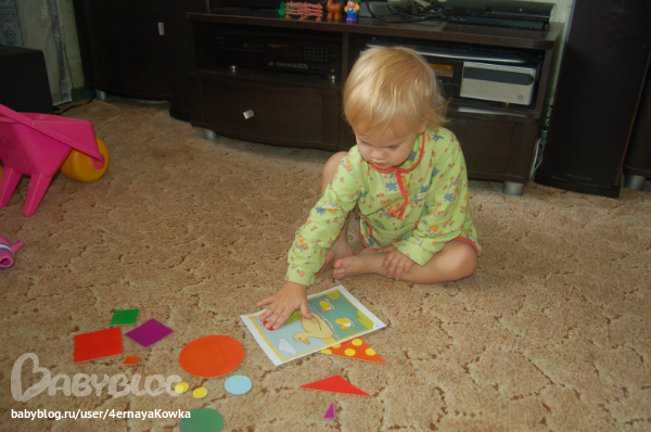 Собирали пазлы, которые для самых маленьких, и в книжке 7 гномов про геометрические фигуры - там много животных.