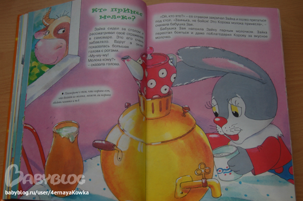 Прочитали в книге о Зайке истории «Кто приносит молоко?» и «Новые друзья». Эта книжка у нас одна из самых любимых)
