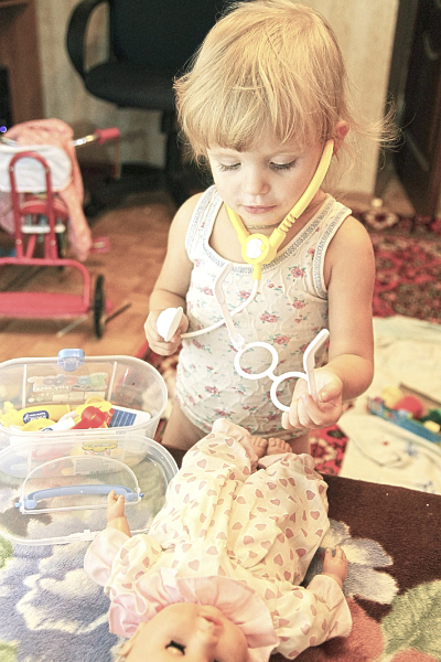 Купили сегодня набор доктора. Показываю вам). Теперь мы лечим всех, кто есть в округе (фото решила так обработать, больше понравилось)