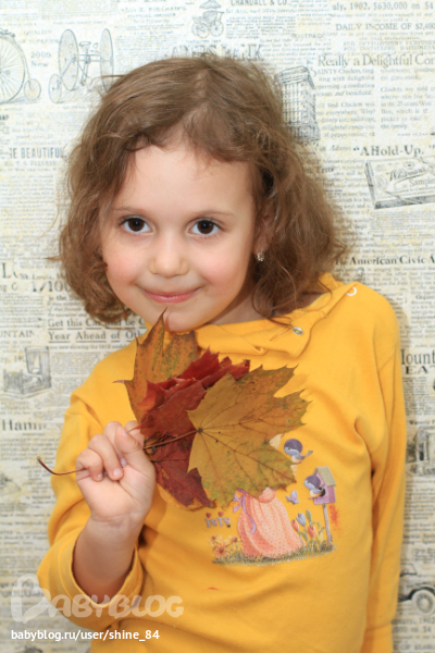 спасибо, мы старались. Листьев только мало хороших у нас было. Анюта та еще воображулька. Но фотографировали их в саду. Это пипец. Я подумала или я своего ребенка превозносила, или у кого то руки не из того места ростут. Получилась как умственноотсталая. пересмотрела старые фотки. фотограф видимо такой))