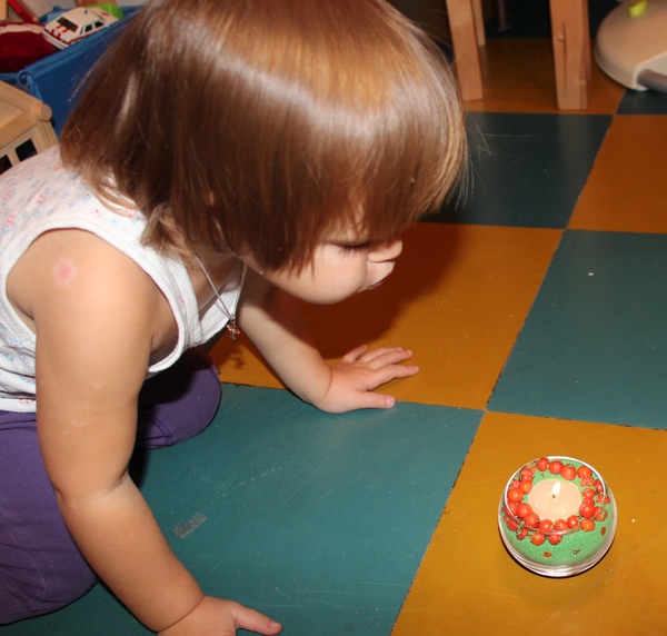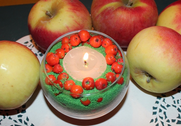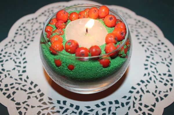 Но так как песок уж очень хотелось высыпать весь, то содержимое свечки совсем не видно, только рябину сверху )