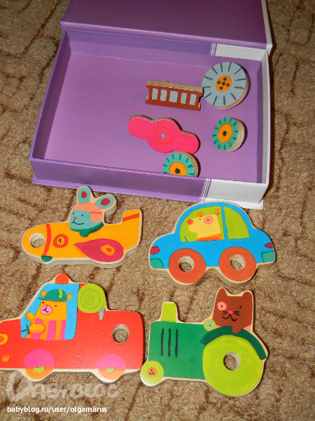Набор прикрути колесо, нам уже оказался позноват, я думаю годика на 1,5 - 2 самое то! но Санька все равно играет, прикручивает колеса)) балуется, прикручивает к трактору винт от самолета а к пожарной машинке вместо лестницы колесо и хихикает)))) А качество сказочное!!! все ровненькое, гладенькое, мммм... )))