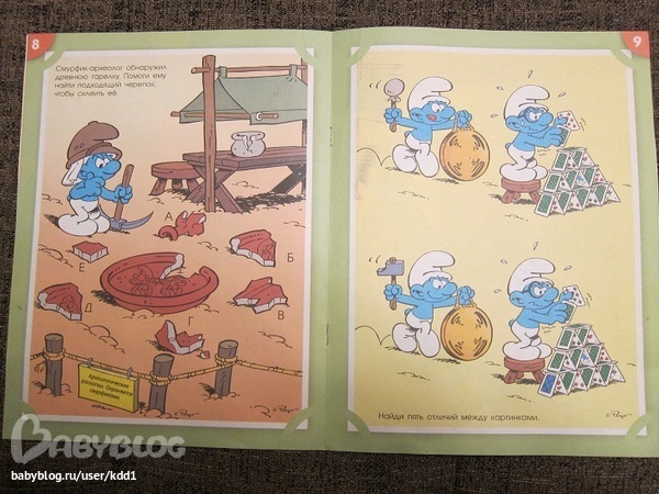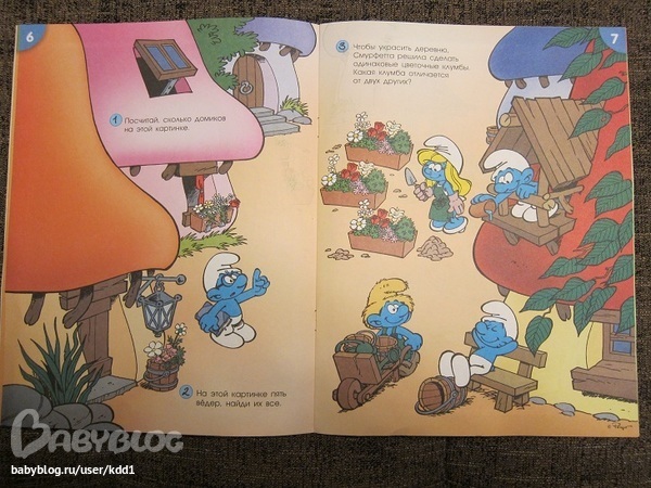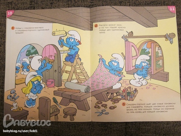И здесь есть что обсудить с ребенком:: чем занят каждый смурфик, как используются предметы, изображенные на картинке, сколько смурфиков работают/лентяйничают)))