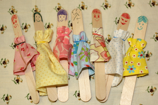 Мистер Умелец или Очумелые ручки (поделки, аппликации, интересные находки, идеи и задумки)Куколки на основе медицинских шпателей и кусочков ткани )))) Рисовать я вообще не умею, поэтому лица у них такие разные и странные. Среднюю Катюшка сама рисовала, очень гордится этим.