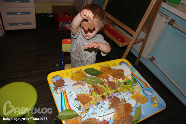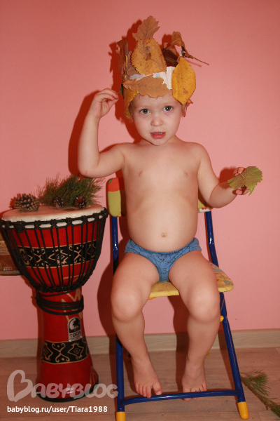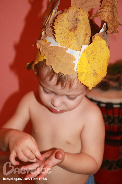 А для счастья совсем мало надо)) Корона наша из картона, обклеена двухсторонним скотчем, на что и клеел Данька листья!!!