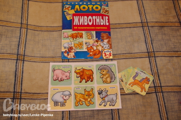 10. Лото Мне и доче очень нравится!!!Животные отрисованы очень по-доброму,все такие милые,узнаваемые.Минус-карточки из тонкого картона.А в остальном-отлично!!!Мы уже разнообразили игру:тот, кто достает карточку должен ПОКАЗАТЬ загадываемое животное.Вот только с барсуком и енотом сложности всегда выходят.:-)))Хочу прикупить еще игры из этой серии.