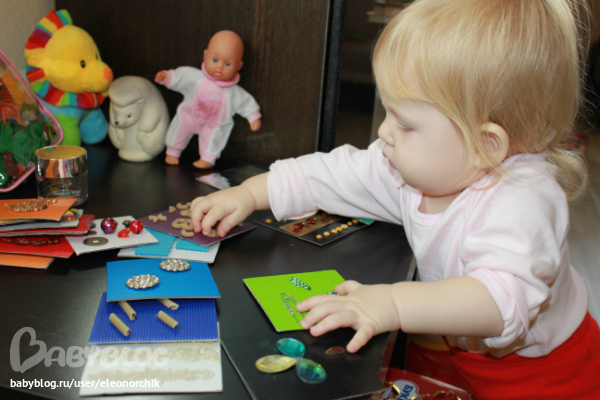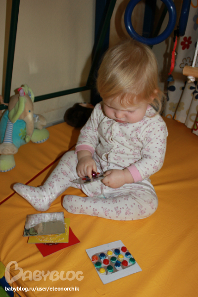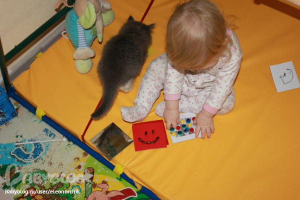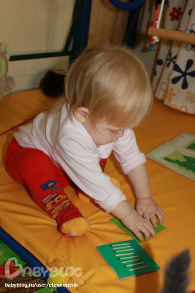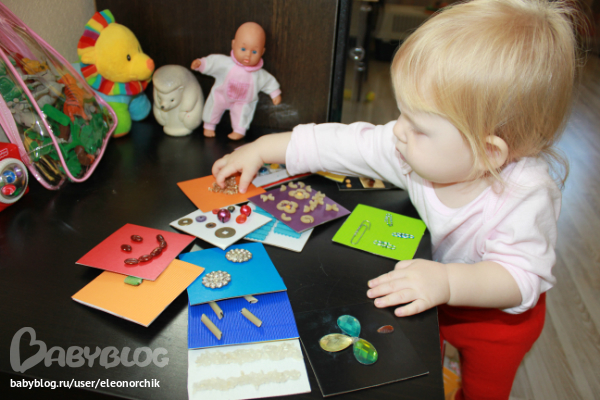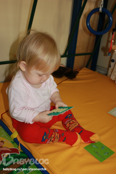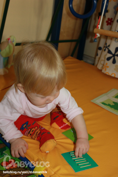 Карточки пошли на ура! Лерочка с удовольствием их разглядывает, трогает.