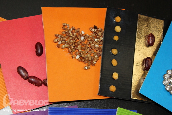 Пока ни чего не оторвалось и не отклеилось. Ну кроме круп конечно. Гречка оказалась самой сыпучей. При первом же просмотре Лерочка почти все отскрябала. :) Пришлось заново все приклеивать, но в этот раз клей еще и сверху гречки полила. Теперь держится хорошо.