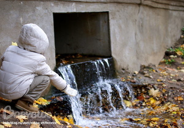 А Никита был очарован водостоком) Не знаю, что ему чудилось, но сидел он около него долго.
