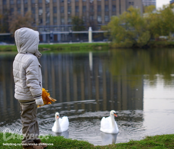 Вот это зрелище! Вот это птицы! Гордые, грациозные, красивищие... И почему я не родилась лебедем?))) Живи себе и радуй окружающих своей красотой! Жуй печенье с шоколадом, которым покормят тебя мальчик в девчачьих варЮжках и вопящая на весь парк девочка в золотой курточке и полосатой шапочке))) Ну да, мы их шоколадным печеньем покормили! Ну не было у нас ничего другого, а угостить птиц очень хотелось)