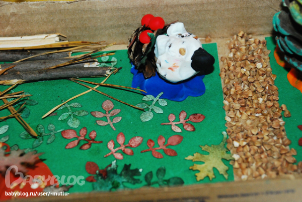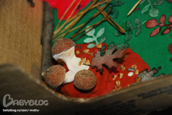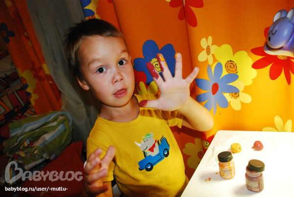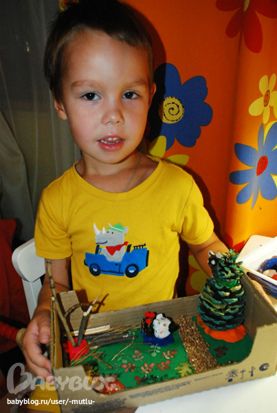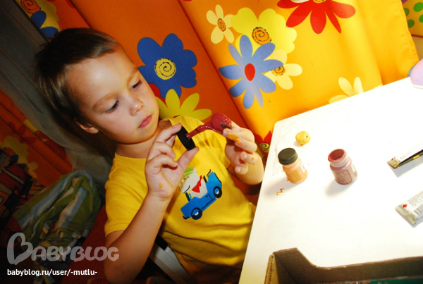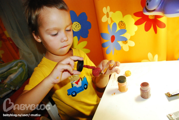 А это Егор захотел еще поработать с кракелюром. Раскрашивает каштаны...