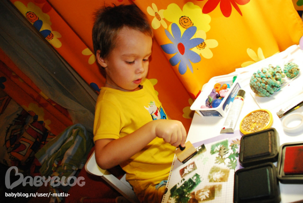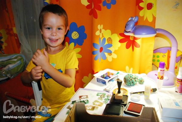 Егору очень понравилось штамповать дырокольные листики чернилами!!!