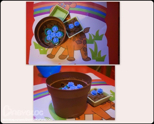 Очень уж нетерпелось испробовать, поэтому взяла за основу идею с сажанием цветов. Искусственных у нас не оказалось, зато нашлись чудесные розочки - подставочки для свечек!