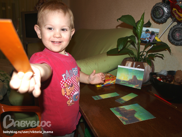 Каждый день Тим знакомился с двумя новыми картинами, мы вешали их на стенку и в течении дня про них не забывали.К концу недели нами были изучены все предложенные Светой картины. Причем Тим знает каждую из них по названию (правда большие названия мы сокращали).