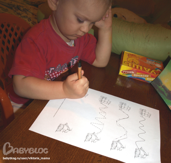 А вот мы выполняем задания : складываем мозайку и проводим линии