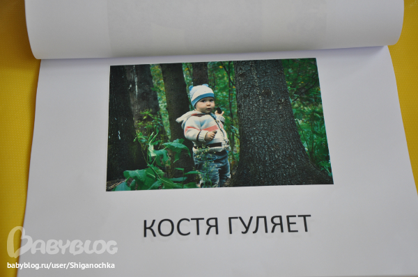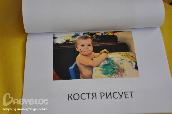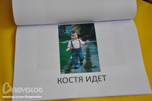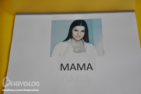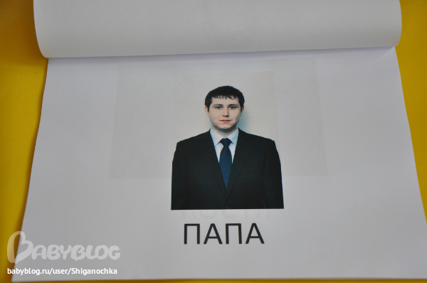 Игры и игрушки для малышей от 1 года до 2х летПервую книжку для сына я хотела сделать уже давно. Идея была отразить всех родственников и режимные моменты ребенка, сделать подпись внизу (а ля по Доману). Чтобы и элемент обучения чтению присутствовал. Вот что получилось, выкладываю некоторые развороты:
