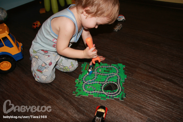 Рисовали вместе трассу воск.мелками..потом тестировали трассу) катали машинки!