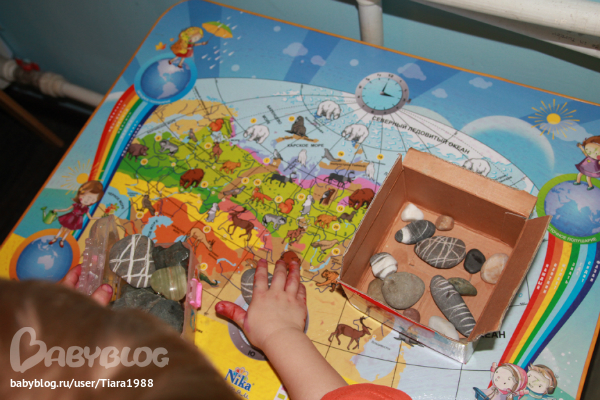 Отлично,раскладываем камни! Руки в краске-мыть отказался...когда болеет много оч вредничает!