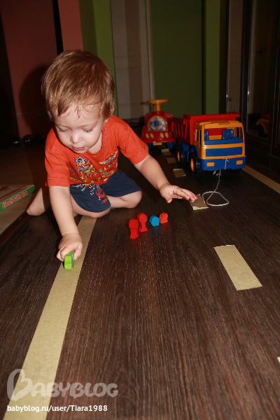 Решили мы с Данькой сделать свою дорогу с помощью малярного скотча!