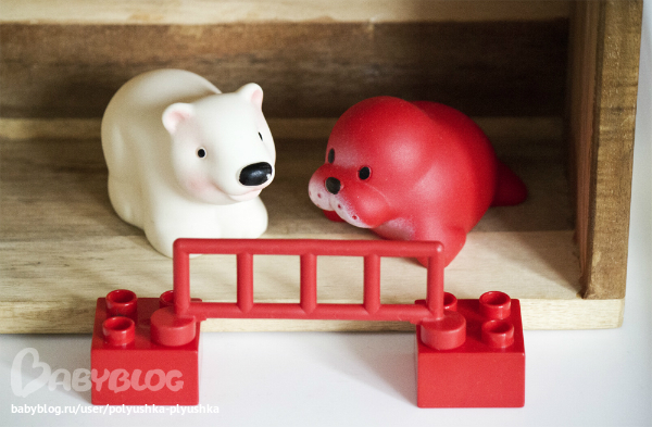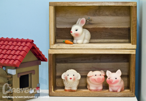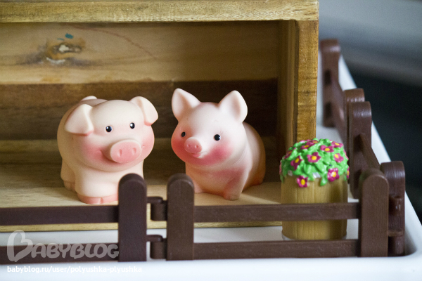 Развивающие игрушки (пазлы, вкладыши, конструкторы, мозаики)В продолжение поста Самые нужные игрушки, покажем наших самых первых и любимых зверят от завода игрушек "Огонек". Они из ПВХ, их можно мыть, купаться с ними одно удовольствие. Играем в ферму и зоопарк. Они у нас как люди, могут спать и на кукольной кроватке. А уж, в постели с Плюшей, они частые гости. А такой чести удостаиваются единицы:)