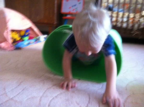 И сегодня еще попробовали в нее забрасывать мячики и шарики. Игра ребенку понравилась.