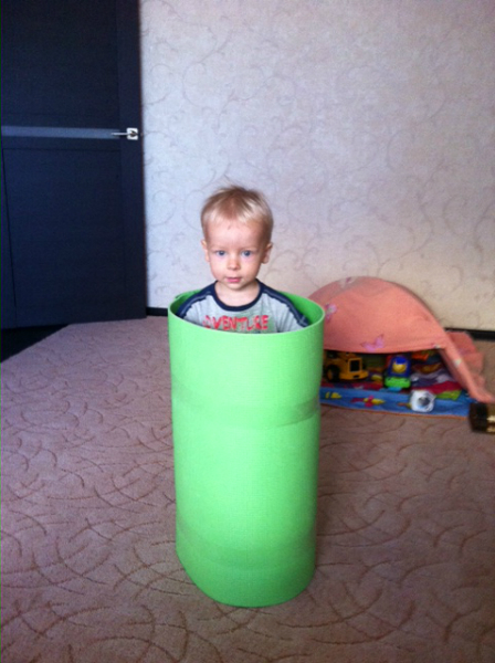 Киру нравится одеть трубу на себя и в ней ходить по квартире
