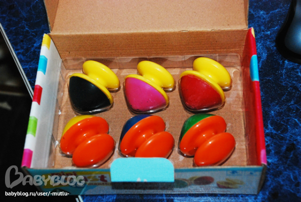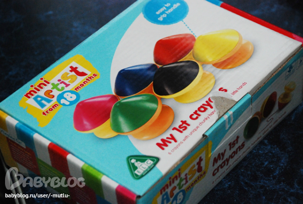 Идея классная. Смутил возраст, указанный на коробке. Мы тоже начинала рисовать именно восковыми мелками, но самыми обычными. А к 18 месяцам дочка рисовала и карандашами, и фломастерами, и кисточкой достаточно свободно.