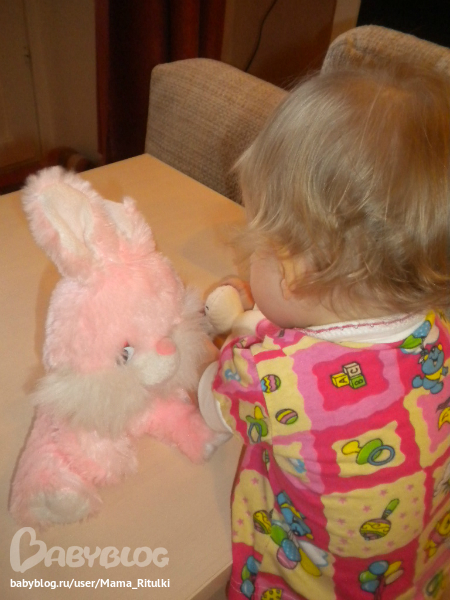 Для начала мы нашли героя дня. У нас оказалось только два плюшевых зайца. Этот весь день пел нам веселую песню.