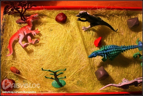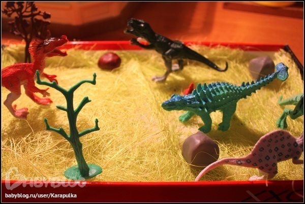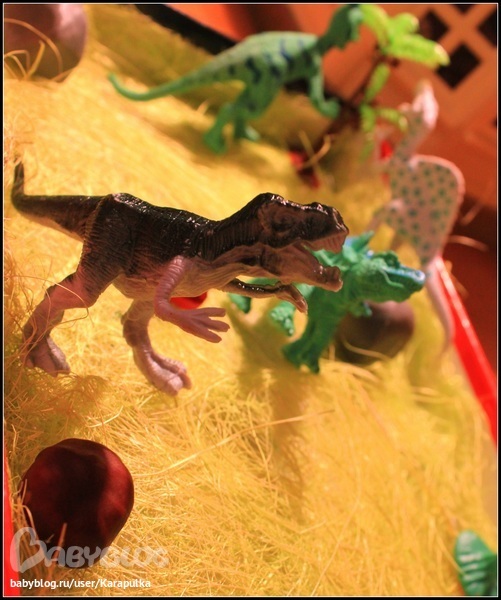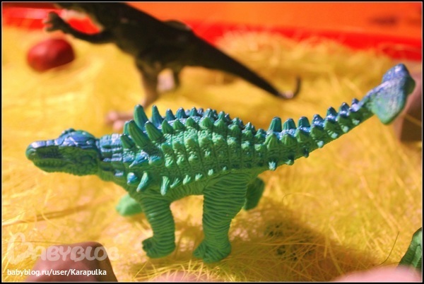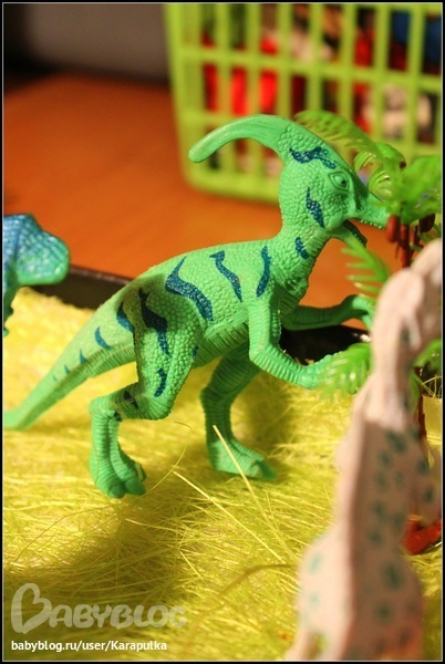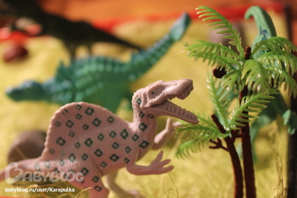 Вот такая у нас теперь полянка и новые жители на ней) Андрюшка ещё упорно пытался присоседить к ним лягушку и ящерицу, но места на всех маловато и динозавры быстренько проганали чужаков...Они и друг с другом-то не очень уживаются. Одни листочки стоят жуют, а другие подходят и наподают на них, потому что хотят мяса) Так что сражения теперь проходят у нас в новом ракурсе... Скорей бы уже прошли у него в голове эти сражения-нападения и воцарился мир!))