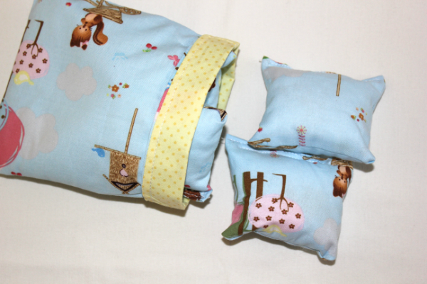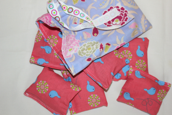 Самодельные игрушкиДва мешочка с квадратными подушками - игрушками. Подушечки из первого тренируют слух, а из второго - осязание.