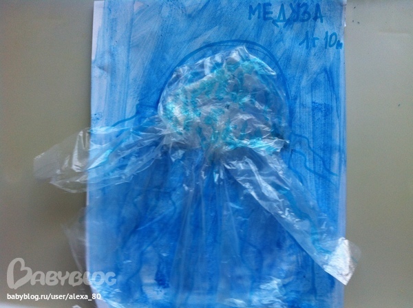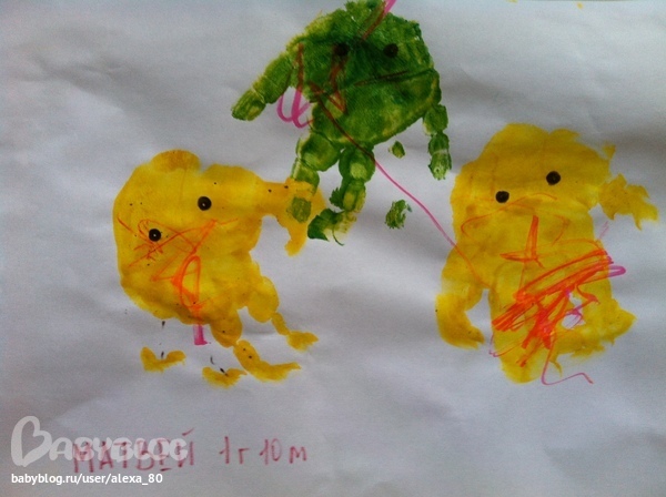 Рисовали ладошкой осьминогов. Матвей не хотел рисовать, я села сама и накрасила себе ладонь, не убирать же все приготовленное. И он быстро закричал, что и он хочет и быстрее меня начал мазать себе ладошки. Вечером я написовала своему осьминогу глаза и рот и он тоже сооизволил) вот такие улыбки получились у Матвея! Мне понравилось, что в нужных местах) надо было еще и глазки за него не рисовать.