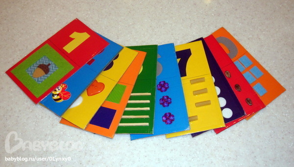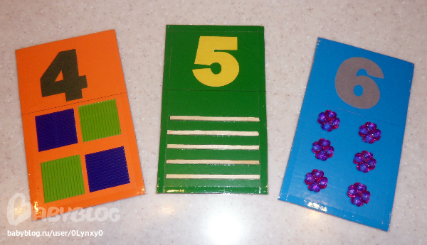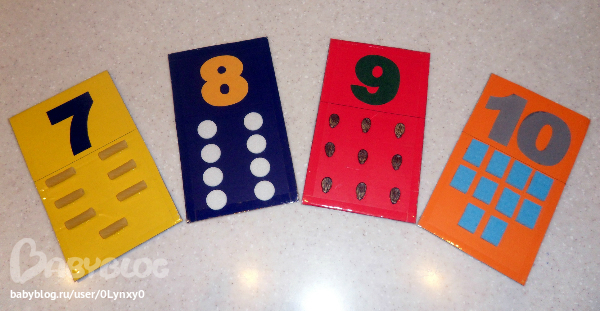 Предполагается, что карточки пригодятся и для знакомства с цифрами. В дальнейшем их можно будет разрезать, чтобы подбирать половинки друг к другу.