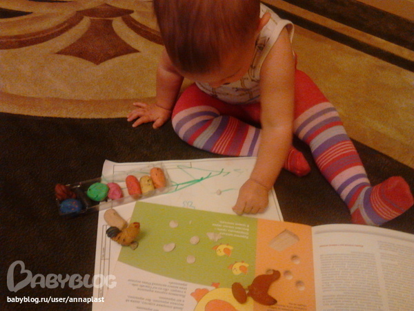 Все время забываю совет Домана - заканчивать игру с ребенком раньше, чем того захочет сам ребенок. Дай, думаю, еще полепим. Но на второй странице Маша мне сказала своей нет:)