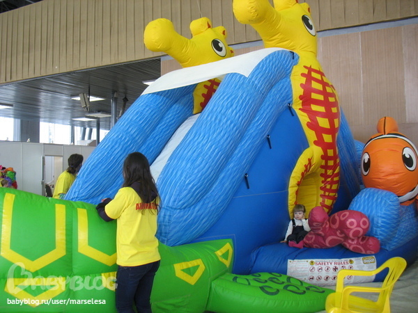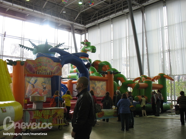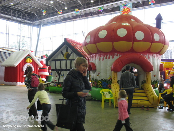 Батутов много, при нас еще не все надули. И кстати, хорошо бы брать туда с собой сменную обувь (мы забыли) - постоянно снимать-одевать сапоги от батута к батуту неудобно)
