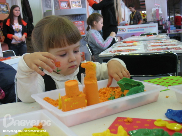 Полепили лунным песком на стенде Кукумбы - очень понравилось. Обязательно куплю домой. Кому интересно, купить на стенде дешевле, чем в СП - 390 наборы со зверюшками и сладостями, 600 город.
