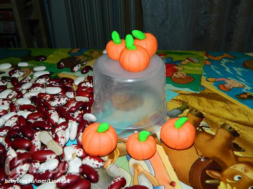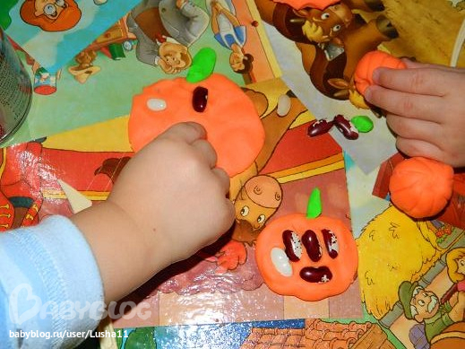 Лепили тыкоаки, точнее пытались изобрасить глазки и ротик. Получились марсианские пришельцы)))