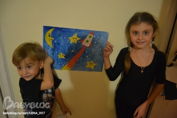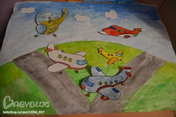 а вот такие рисунки делала я с Темкой и Дианой,по просьбе Артема дети сами расскрашивали фон что то вырезали что-то клеили.. это аэропорт с самолетами и ракета