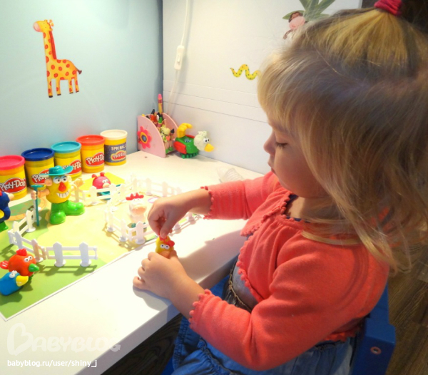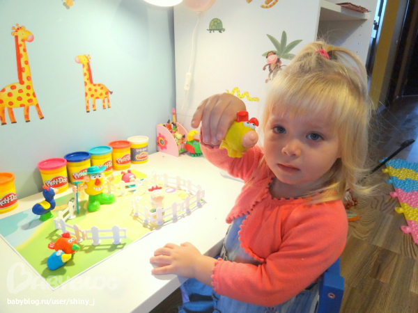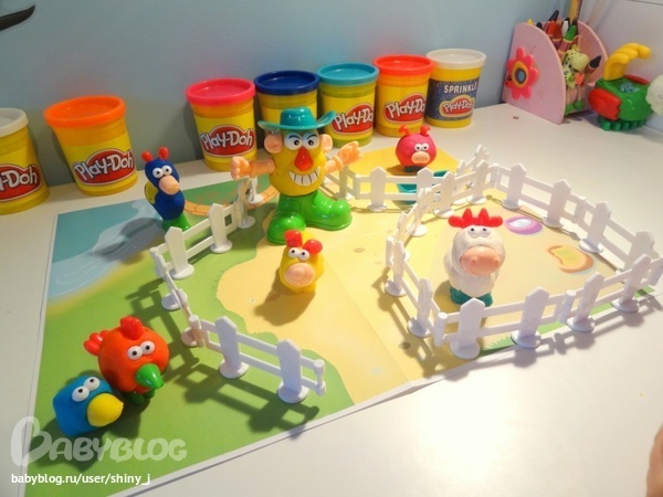 очень забавный набор, сама получила удовольствие пока строили ферму! лепила всех я, а доча вставляла "органы" :) когда сделали самого фермера, Софи сказала "ой, какой страшный"