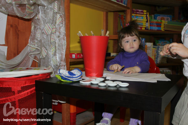 а пока мама выбирала, Ксенечка рисовала и играла с девочкой
