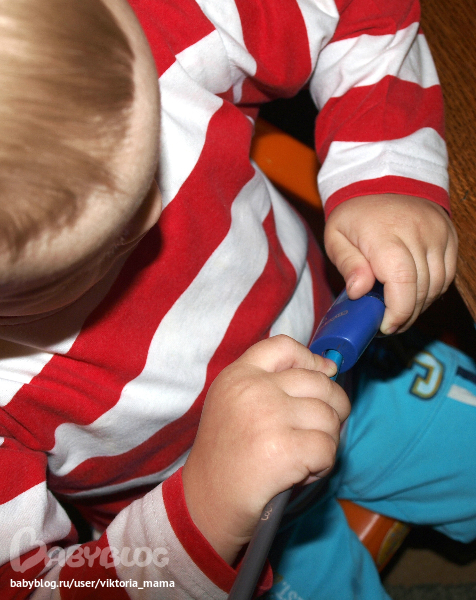 А теперь учимся владеть и резать ножницами.У нас еще это занятие не очень получается.Тиму нравится, когда я ставлю его ручку в нужное место, а он нажимает на ножницы