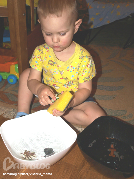 3. Съездили в магазин и купили игрушки для следующей ТН.Но дляначала игрушки нужно помыть.Для этого мы используем губку и детское жидкое мыло.Намыливаем, смываем и вытираем полотенцем.