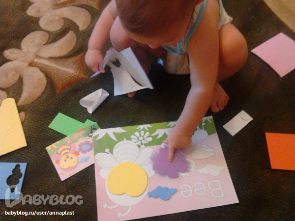 Творчеством стала мозайка, которую я спрятала на 2 недели, Маша с радостью ее пособирала, и объемные наклейки. Но вот тут Машу хватило ненадолго)