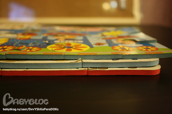 неплохо, неплохо, если бы ни одно "но": в отличие от БОМИКА, эти пазлы отклеиваются от основы.. У нас после 10 раза сборки и ковыряний отклеились, пришлось залатать супер-клеем.... только после него перестали отскакивать...